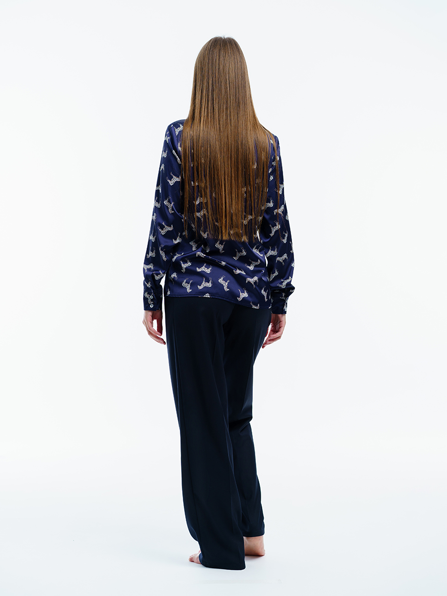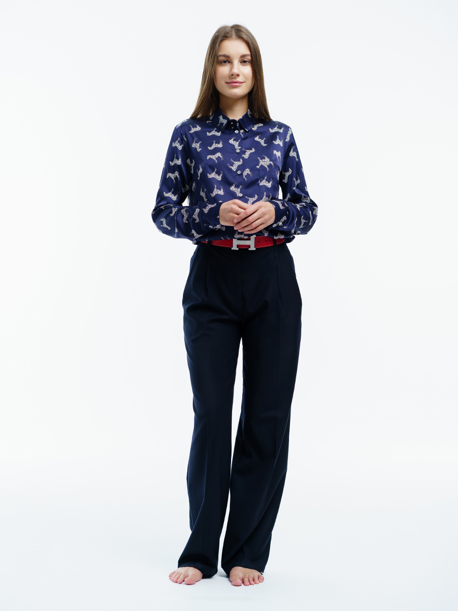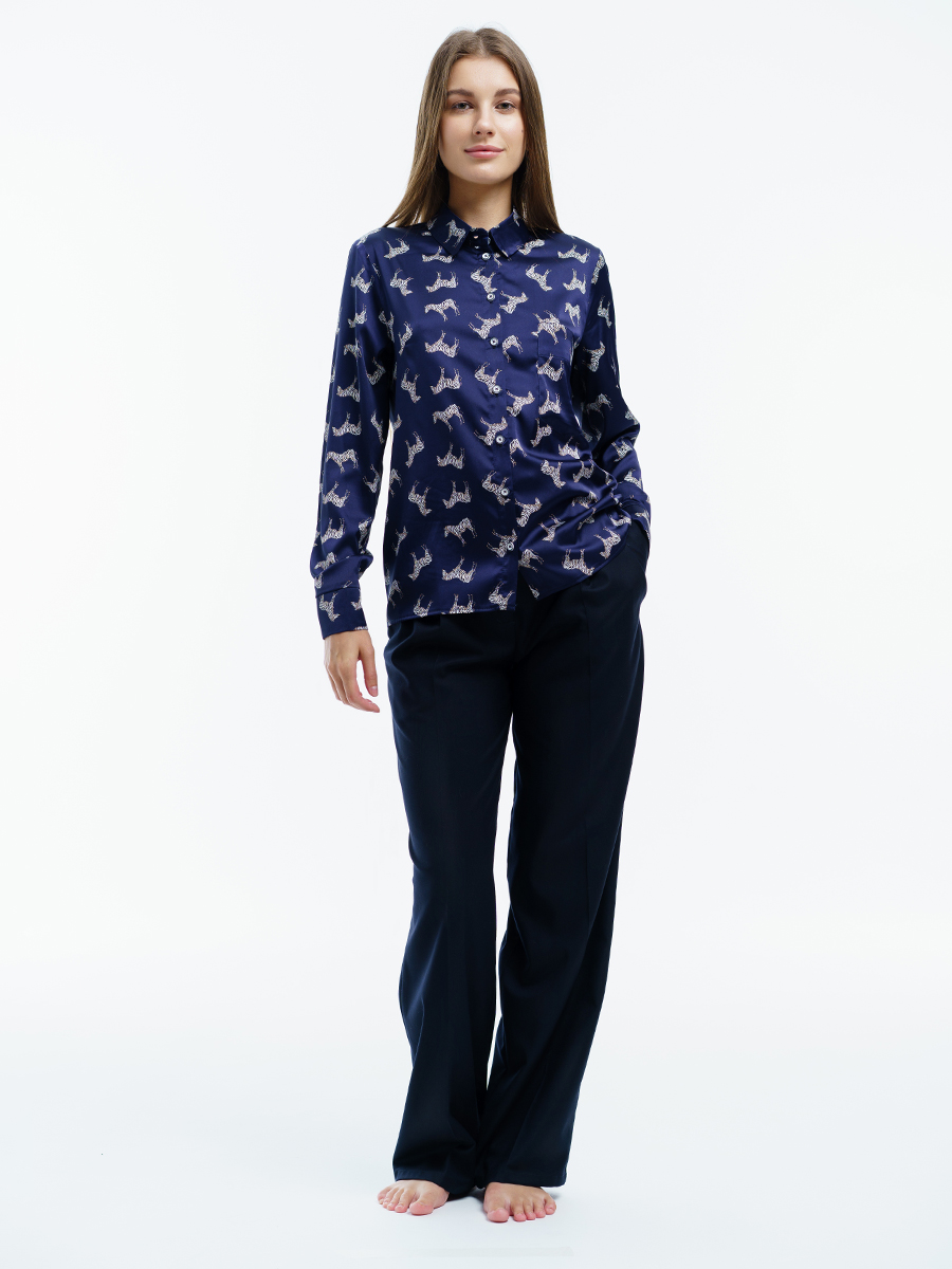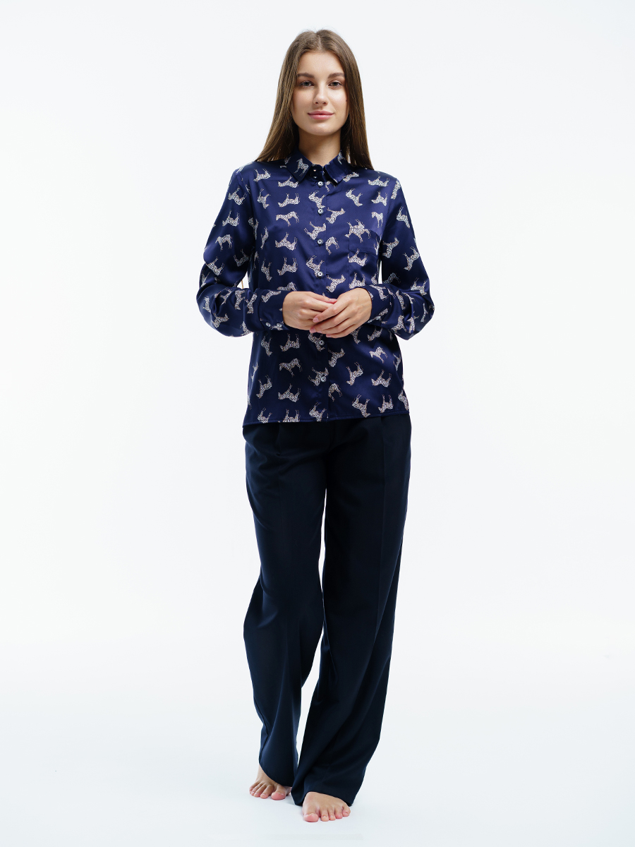 Одна из самых необходимых вещей в любом гардеробе – классическая блузка. Manika Belle представляет вашему вниманию стильную блузку. Она свободного кроя, классического синего цвета с принтом зебры, отложным воротничком, большим нагрудным карманом. Рукава с манжетами застегиваются на две пуговицы. Такая прекрасная рубашка дополнит ваш повседневный гардероб. Ее легко сочетать с любой одеждой, или в дуэте с брюками 403/04/3 или брюками 402/06/2 от Manika Belle. Эта классическая блуза уместна в любой обстановке: в офисе, на отдыхе, в повседневных делах.