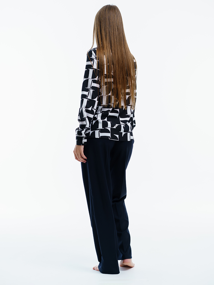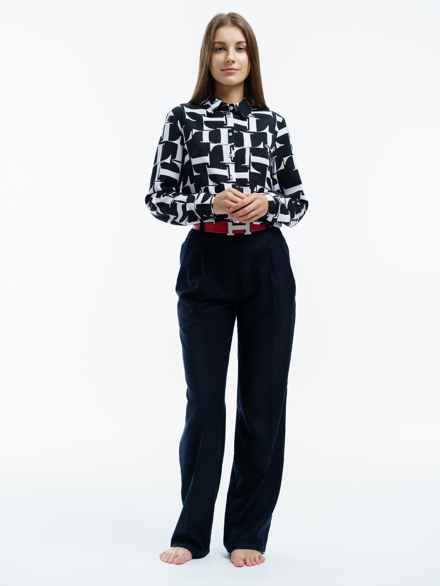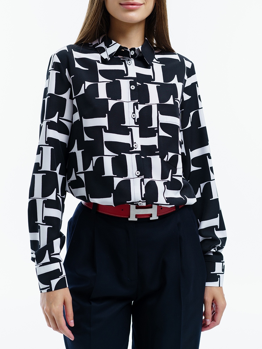 Одна из самых необходимых вещей в любом гардеробе – классическая блузка. Manika Belle представляет вашему вниманию стильную блузку. Она свободного кроя, классического черного цвета с принтом, с отложным воротничком, большим нагрудным карманом. Рукава с манжетами застегиваются на две пуговицы. Такая прекрасная рубашка дополнит ваш повседневный гардероб. Ее легко сочетать с любой одеждой, или в дуэте с брюками 403/04/3 или брюками 402/06/2 от Manika Belle. Эта классическая блуза уместна в любой обстановке: в офисе, на отдыхе, в повседневных делах.
