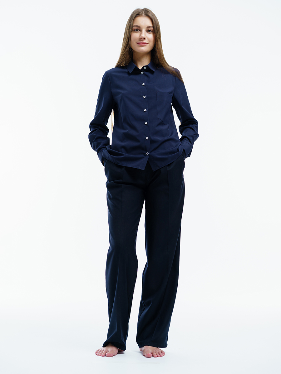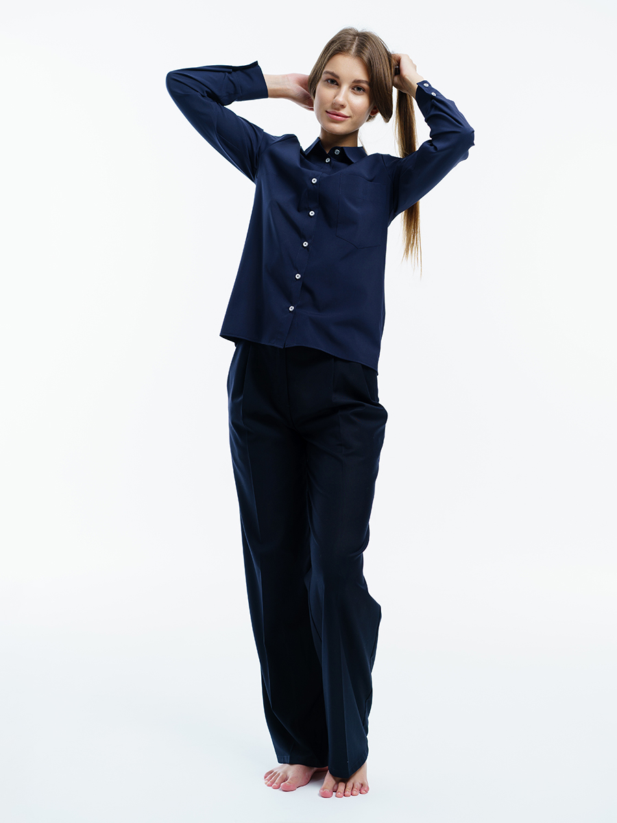 Одна из самых необходимых вещей в любом гардеробе – классическая блузка. Manika Belle представляет вашему вниманию стильную блузку. Она свободного кроя, приятного синего цвета, с отложным воротничком, большим нагрудным карманом. Рукава с манжетами застегиваются на две пуговицы. Такая прекрасная рубашка дополнит ваш повседневный гардероб. Ее легко сочетать с любой одеждой, или в дуэте с брюками 403/04/3 или брюками 402/06/2 от Manika Belle. Эта классическая блуза уместна в любой обстановке: в офисе, на отдыхе, в повседневных делах.