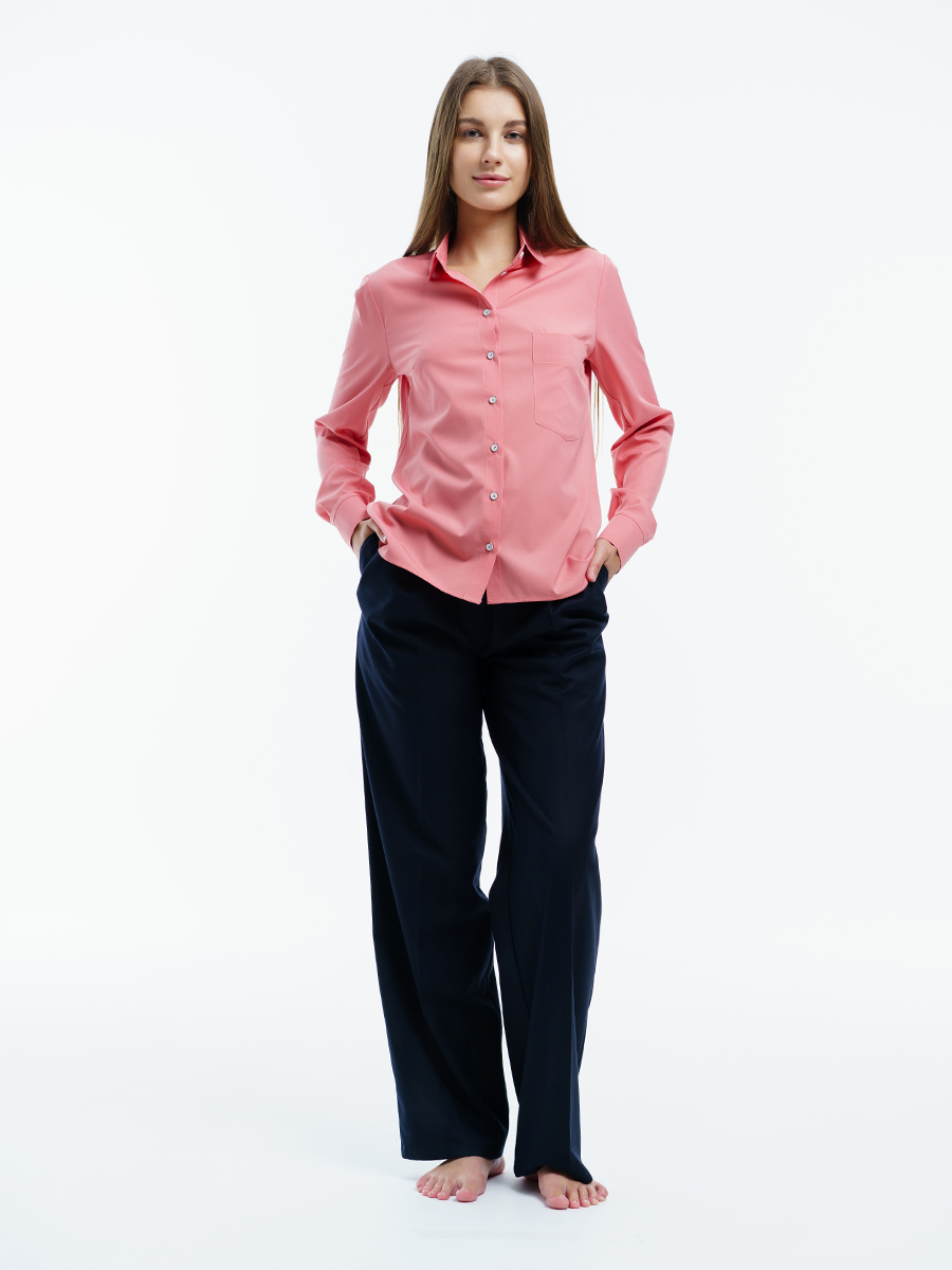 Одна из самых необходимых вещей в любом гардеробе – классическая блузка. Manika Belle представляет вашему вниманию стильную блузку. Она свободного кроя, приятного кораллового цвета, с отложным воротничком, большим нагрудным карманом. Рукава с манжетами застегиваются на две пуговицы. Такая прекрасная рубашка дополнит ваш повседневный гардероб. Ее легко сочетать с любой одеждой, или в дуэте с брюками 403/04/3 или брюками 402/06/2 от Manika Belle. Эта классическая блуза уместна в любой обстановке: в офисе, на отдыхе, в повседневных делах.