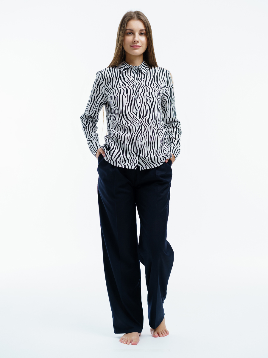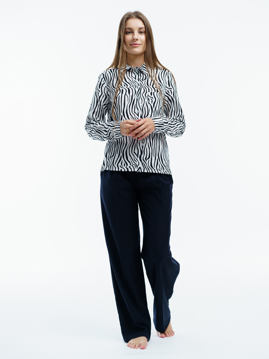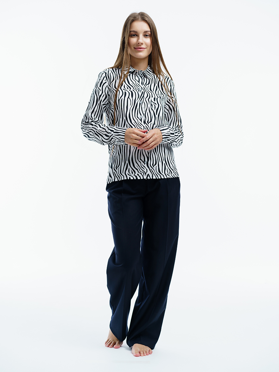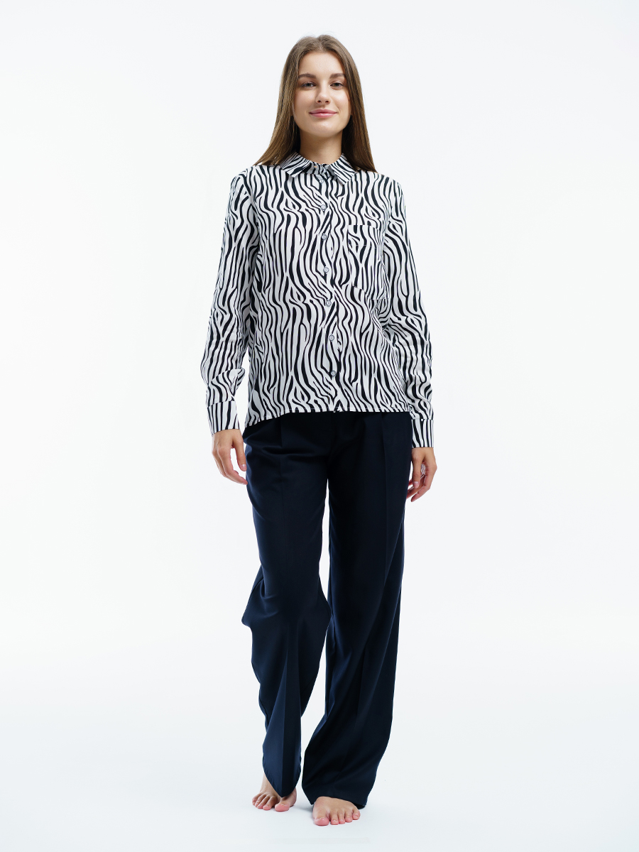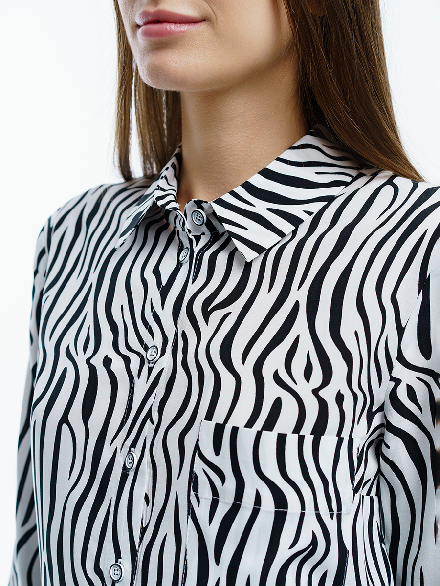 Одна из самых необходимых вещей в любом гардеробе – классическая блузка. Manika Belle представляет вашему вниманию стильную блузку. Она свободного кроя, классического черно-белого цвета с рисунком абстракция, с отложным воротничком, большим нагрудным карманом. Рукава с манжетами застегиваются на две пуговицы. Такая прекрасная рубашка дополнит ваш повседневный гардероб. Ее легко сочетать с любой одеждой, или в дуэте с брюками 403/04/3 или брюками 402/06/2 от Manika Belle. Эта классическая блуза уместна в любой обстановке: в офисе, на отдыхе, в повседневных делах.