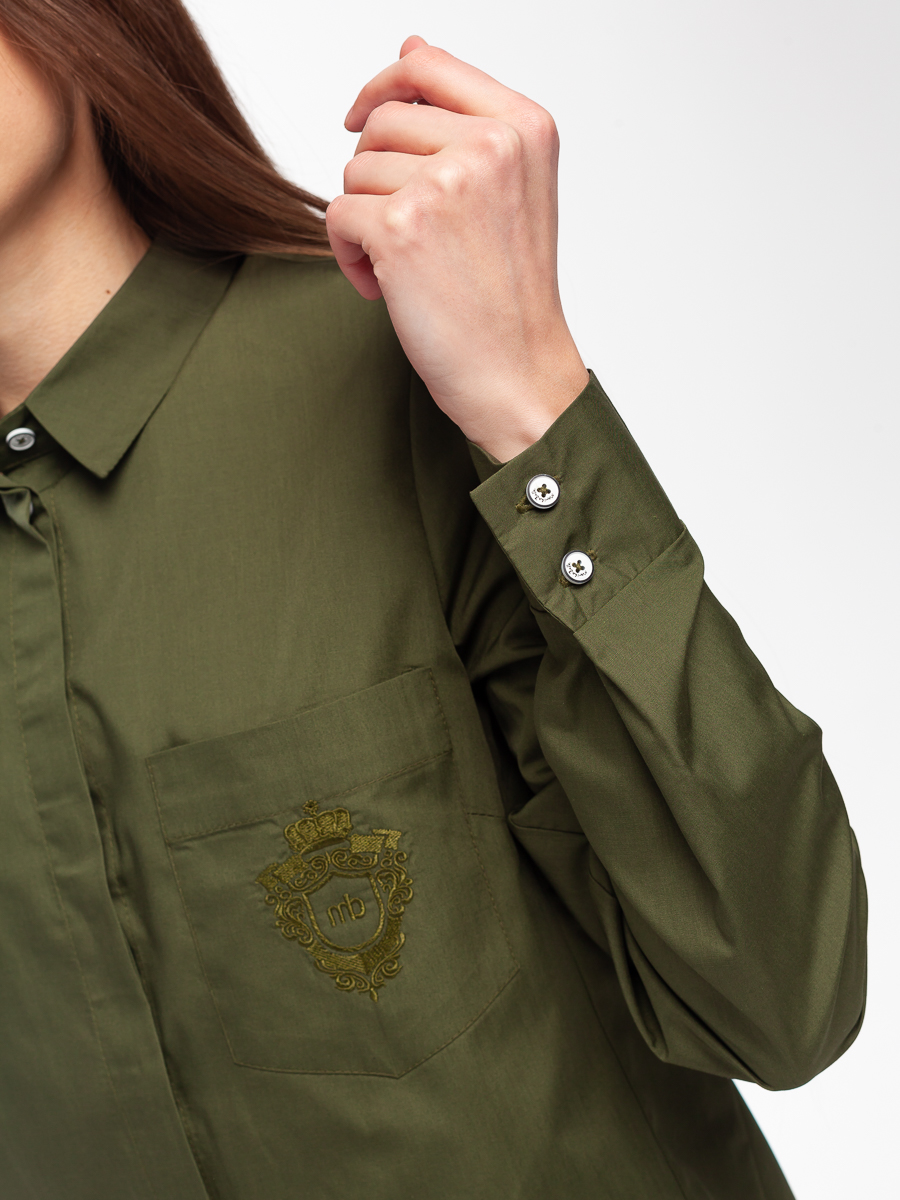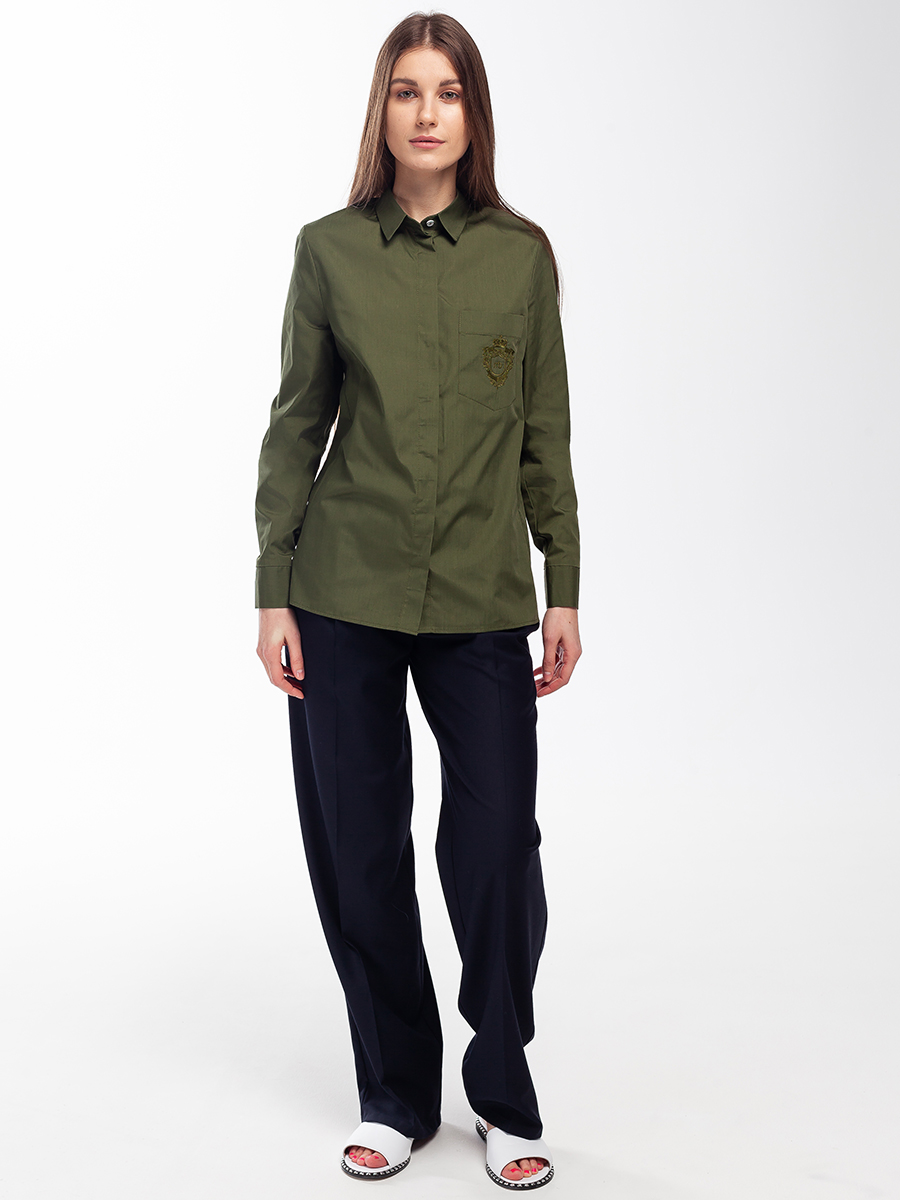 Одна из самых необходимых вещей в любом гардеробе – классическая зеленая блузка. Manika Belle представляет вашему вниманию блузку из хлопка. Она свободного кроя, классического белого цвета, с отложным воротничком, большим нагрудным карманом и оригинальной вышивкой. Спинка с кокеткой и декоративной складкой, рукава с манжетами застегиваются на две пуговицы. Оригинальная деталь данной модели передняя застежка – супат. Такая прекрасная рубашка дополнит ваш повседневный гардероб. Ее легко сочетать с любой одеждой, или в дуэте с шортами 481/02/1 или брюками 408/01/1 от Manika Belle. Эта классическая блуза уместна в любой обстановке: в офисе, на отдыхе, в повседневных делах.