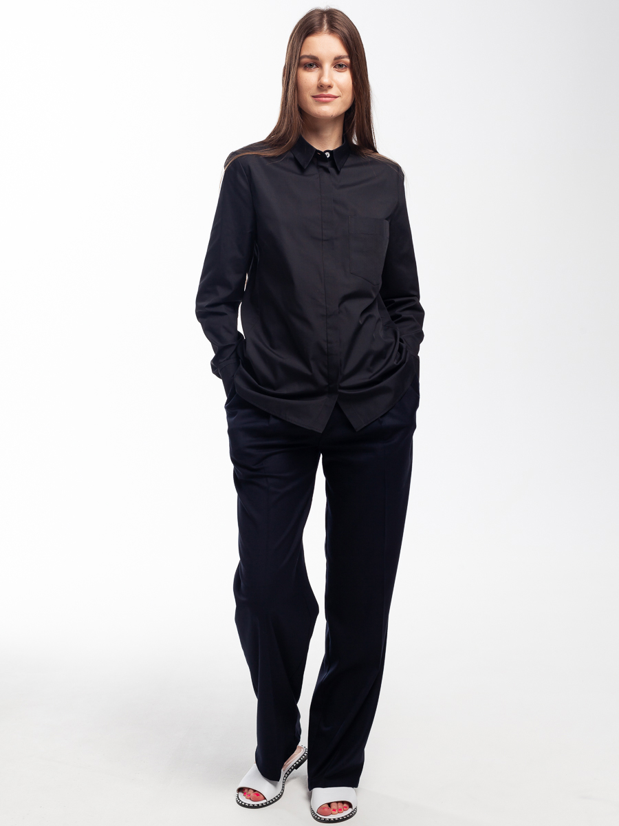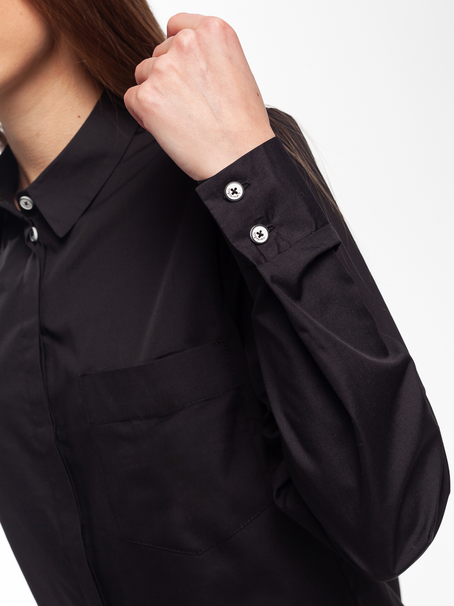 Одна из самых необходимых вещей в любом гардеробе – классическая черная блузка. Manika Belle представляет вашему вниманию блузку из хлопка. Она свободного кроя, классического белого цвета, с отложным воротничком, большим нагрудным карманом и оригинальной вышивкой. Спинка с кокеткой и декоративной складкой, рукава с манжетами застегиваются на две пуговицы. Оригинальная деталь данной модели передняя застежка – супат. Такая прекрасная рубашка дополнит ваш повседневный гардероб. Ее легко сочетать с любой одеждой, или в дуэте с шортами 481/02/1 или брюками 408/01/1 от Manika Belle. Эта классическая блуза уместна в любой обстановке: в офисе, на отдыхе, в повседневных делах.