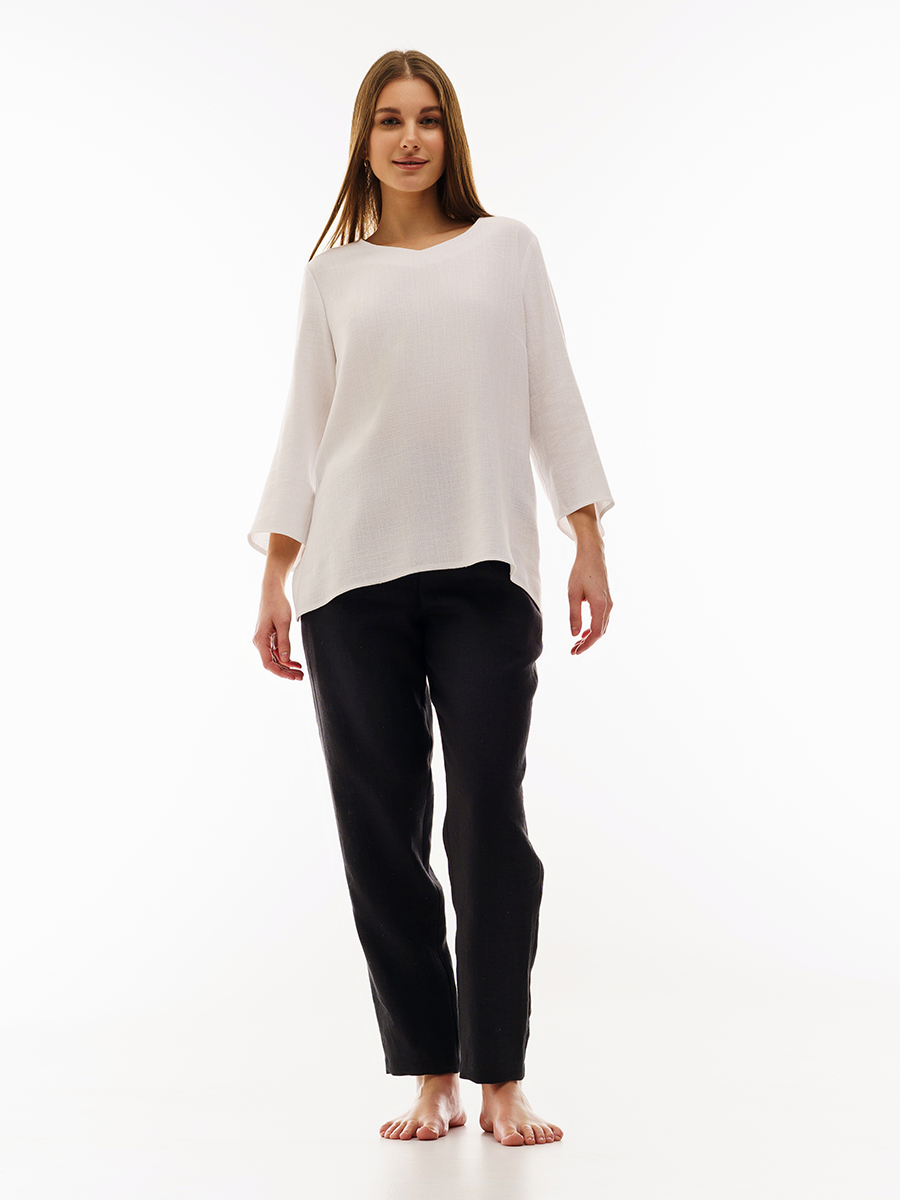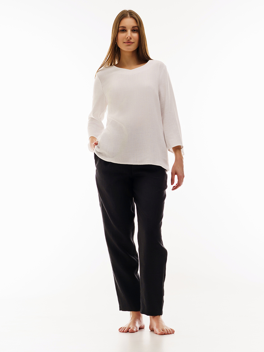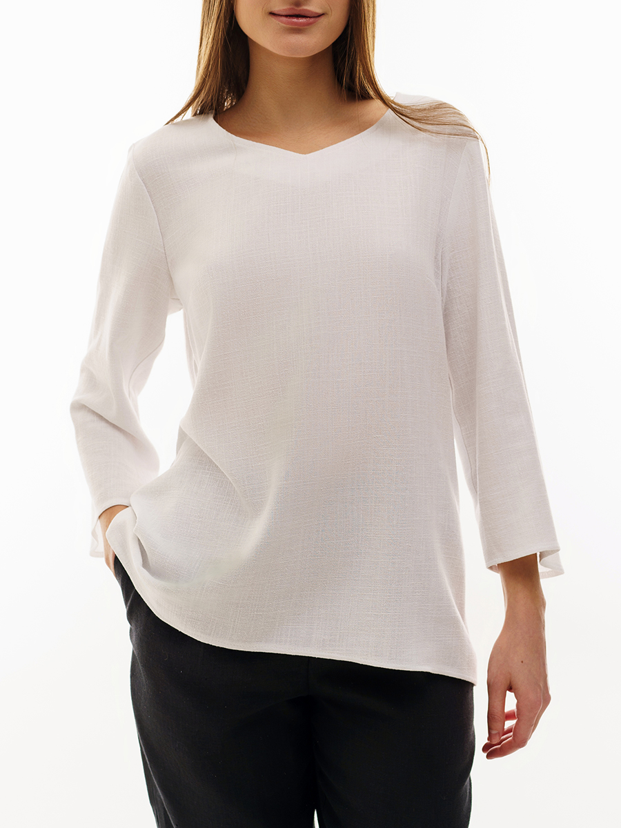 Базовая женская блузка впишется в гардероб и как офисная, деловая, и как повседневная. V-образный вырез горловины придает изделию изюминку. Льняная блузка с длинным рукавом будет отлично сочетаться с юбками, джинсами и брюками. В холодную погоду носите сверху пиджак или жакет. Блузка выполнена из 100% льна актуальных расцветок. Крой выделит все ваши достоинства. Страна производства – Беларусь. Благодаря отработанным лекалам и качественному пошиву наши изделия добротные и прекрасно сидят на фигуре! Отличный вариант на работу, на прогулку, на отдых, для подарка.
