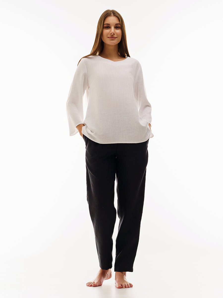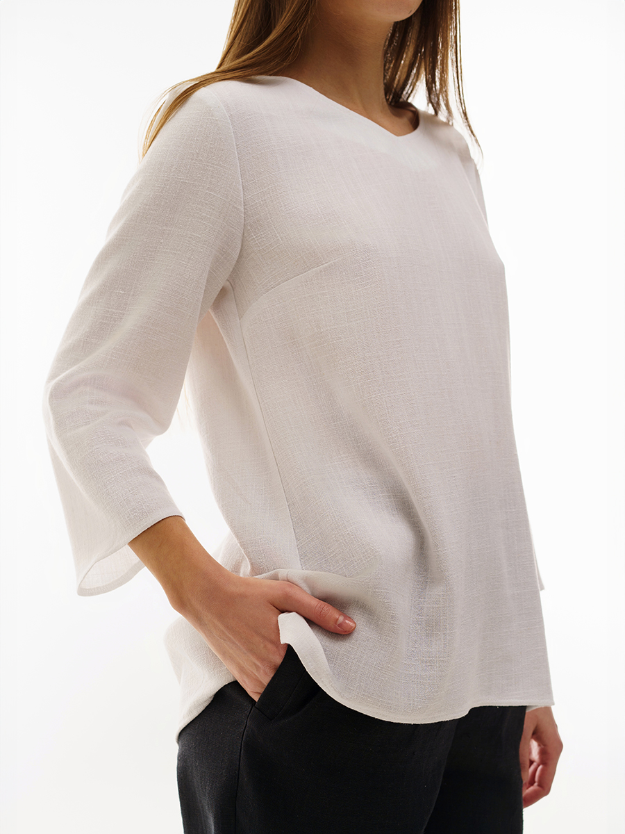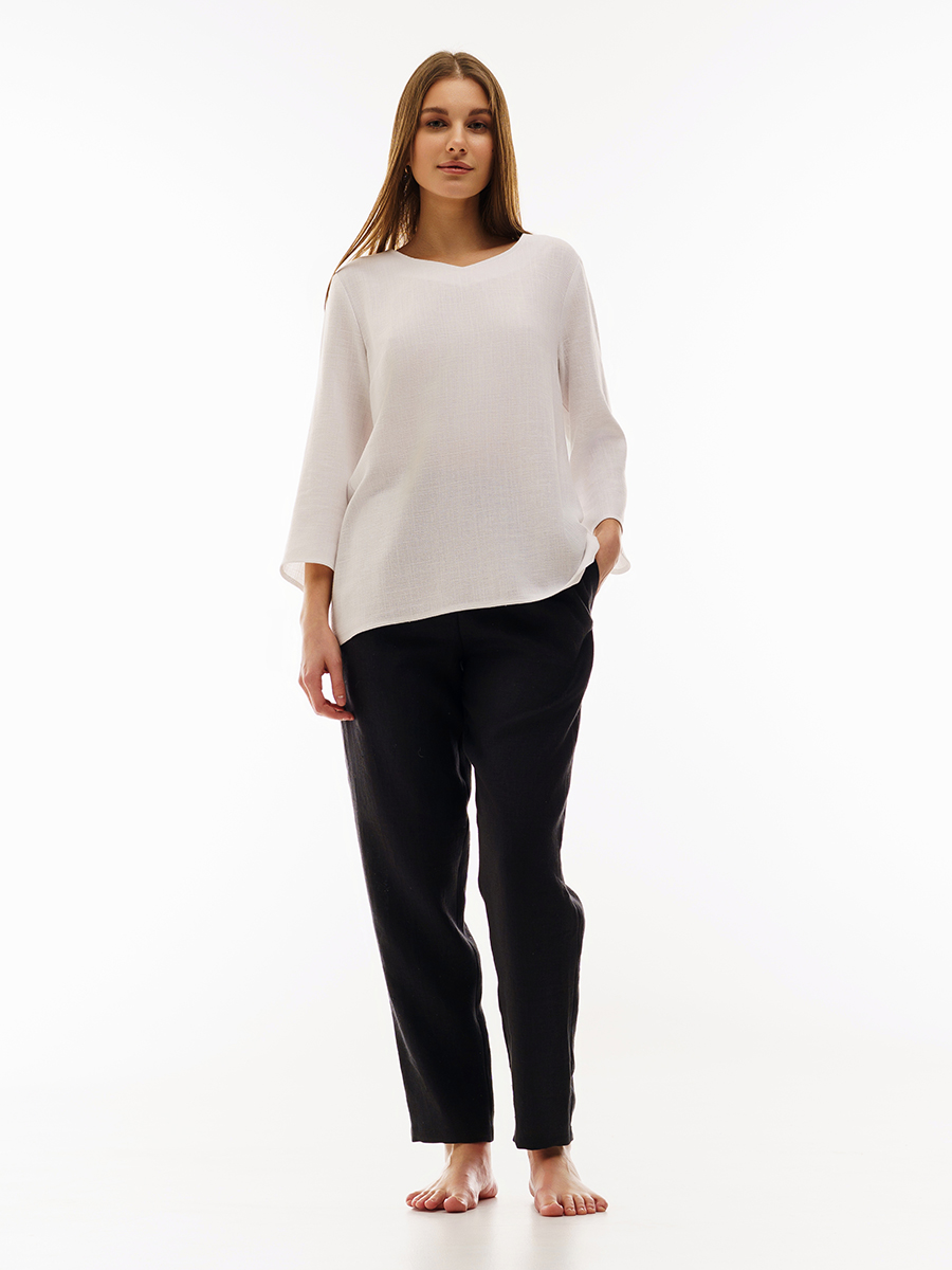 Базовая женская блузка впишется в гардероб и как офисная, деловая, и как повседневная. V-образный вырез горловины придает изделию изюминку. Льняная блузка с длинным рукавом будет отлично сочетаться с юбками, джинсами и брюками. В холодную погоду носите сверху пиджак или жакет. Блузка выполнена из 100% льна актуальных расцветок. Крой выделит все ваши достоинства. Страна производства – Беларусь. Благодаря отработанным лекалам и качественному пошиву наши изделия добротные и прекрасно сидят на фигуре! Отличный вариант на работу, на прогулку, на отдых, для подарка.