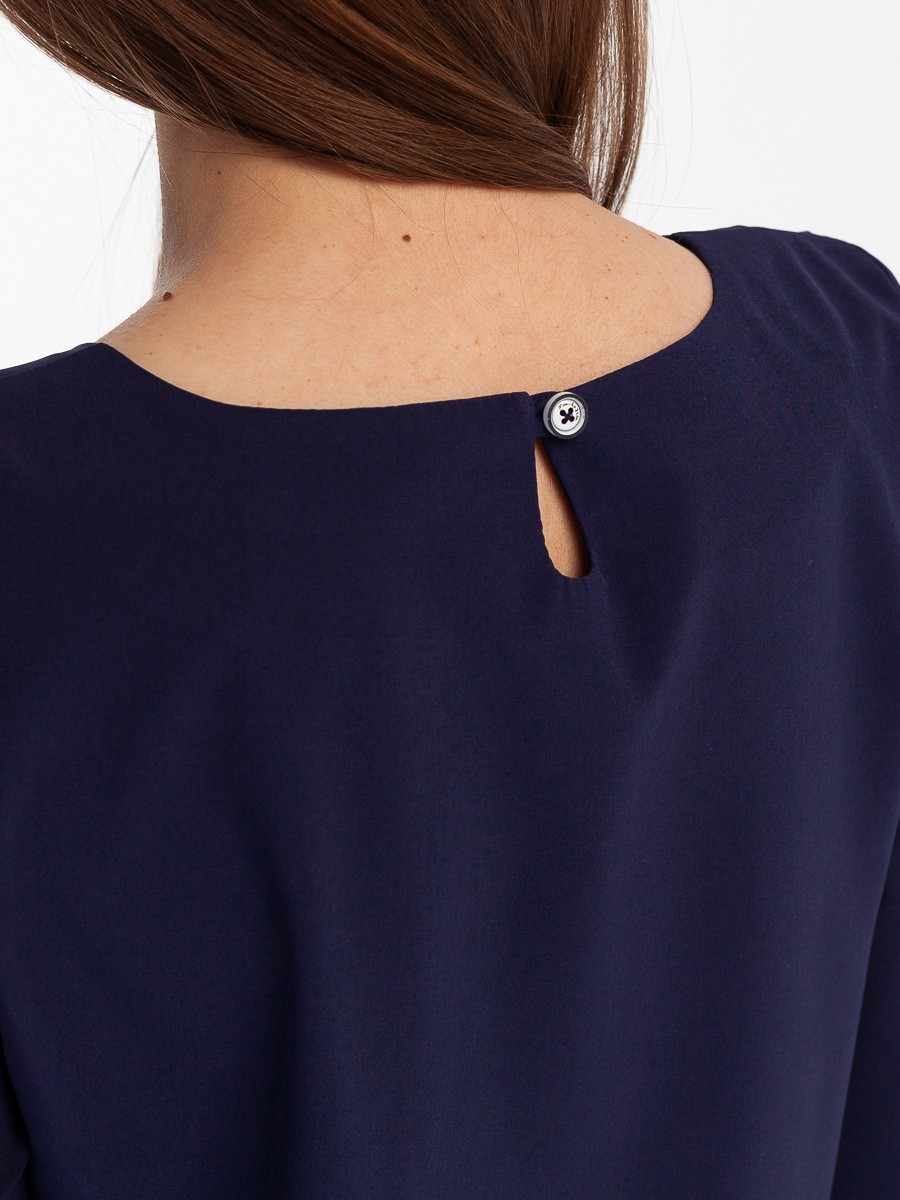 Одна из самых необходимых вещей в любом гардеробе – классическая блузка. Manika Belle представляет вашему вниманию стильную блузку. Мягкая и приятная на ощупь ткань. Насыщенный темно-синий цвет. Горловина – лодочка. Блузка застегивается сзади на пуговицу. Боковые швы заканчиваются разрезами по пять сантиметров. По центру переда складка шириной 3 см, делающая модель женственной и утонченной. Такая прекрасная рубашка дополнит ваш повседневный гардероб. Ее легко сочетать с любой одеждой, или в дуэте с брюками 403/04/3 или брюками 402/06/2 от Manika Belle. Эта классическая блуза уместна в любой обстановке: в офисе, на отдыхе, в повседневных делах.