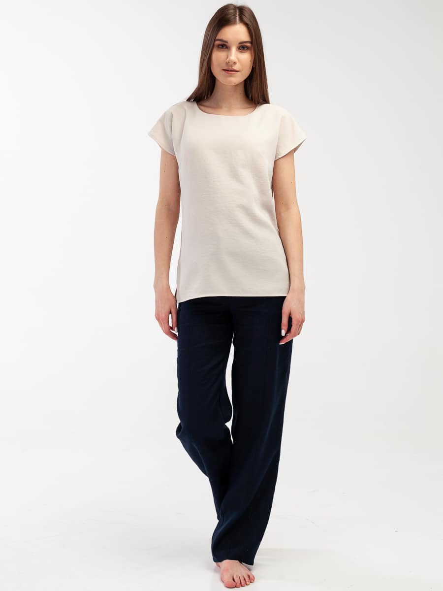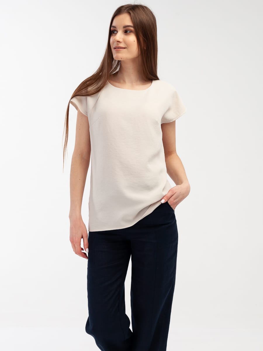 Каждая модница владеет в своем гардеробе хотя бы одной блузкой. Сейчас как никогда актуален минимализм, поэтому блузка свободного кроя дополнит ваш базовый гардероб. Ее легко сочетать в дуэте с шортами 481/02/1 или брюками 408/01/1 от Manika Belle. Этот стильный топ – необходимая деталь, которая в тоже время и проста, и модна, и многофункциональна. Эта классическая блуза уместна в любой обстановке: в офисе, на отдыхе, в повседневных делах.