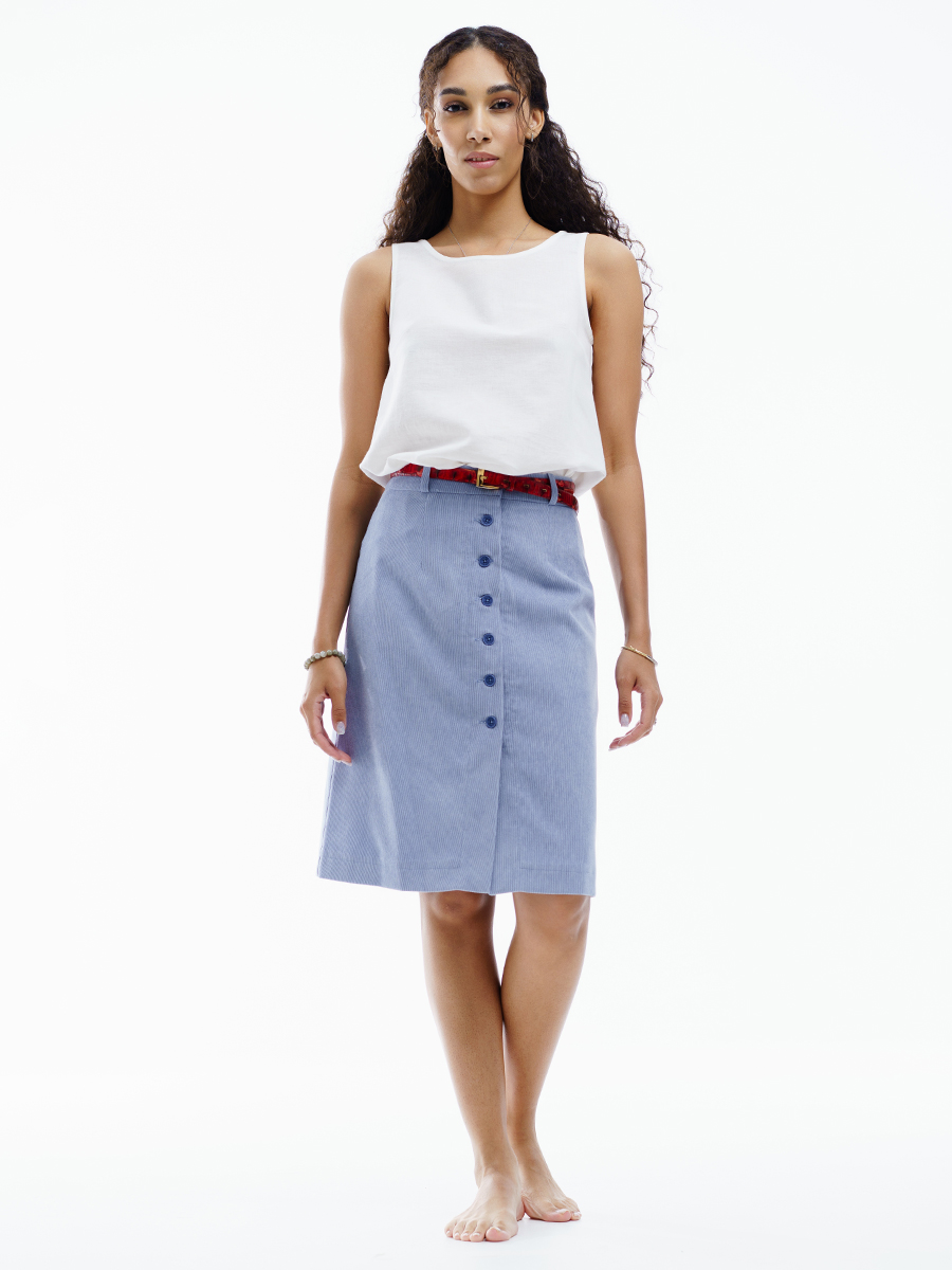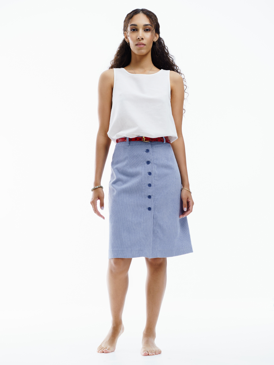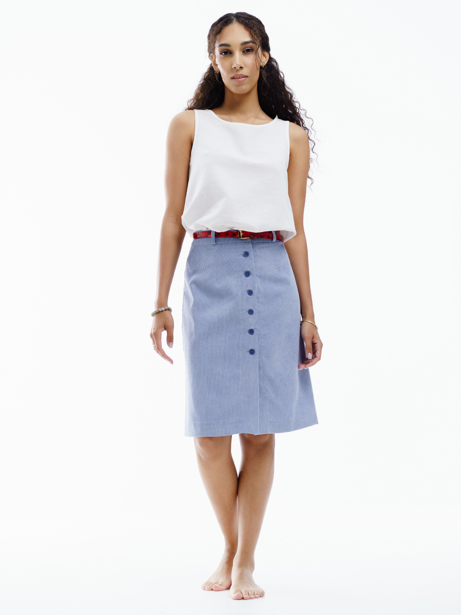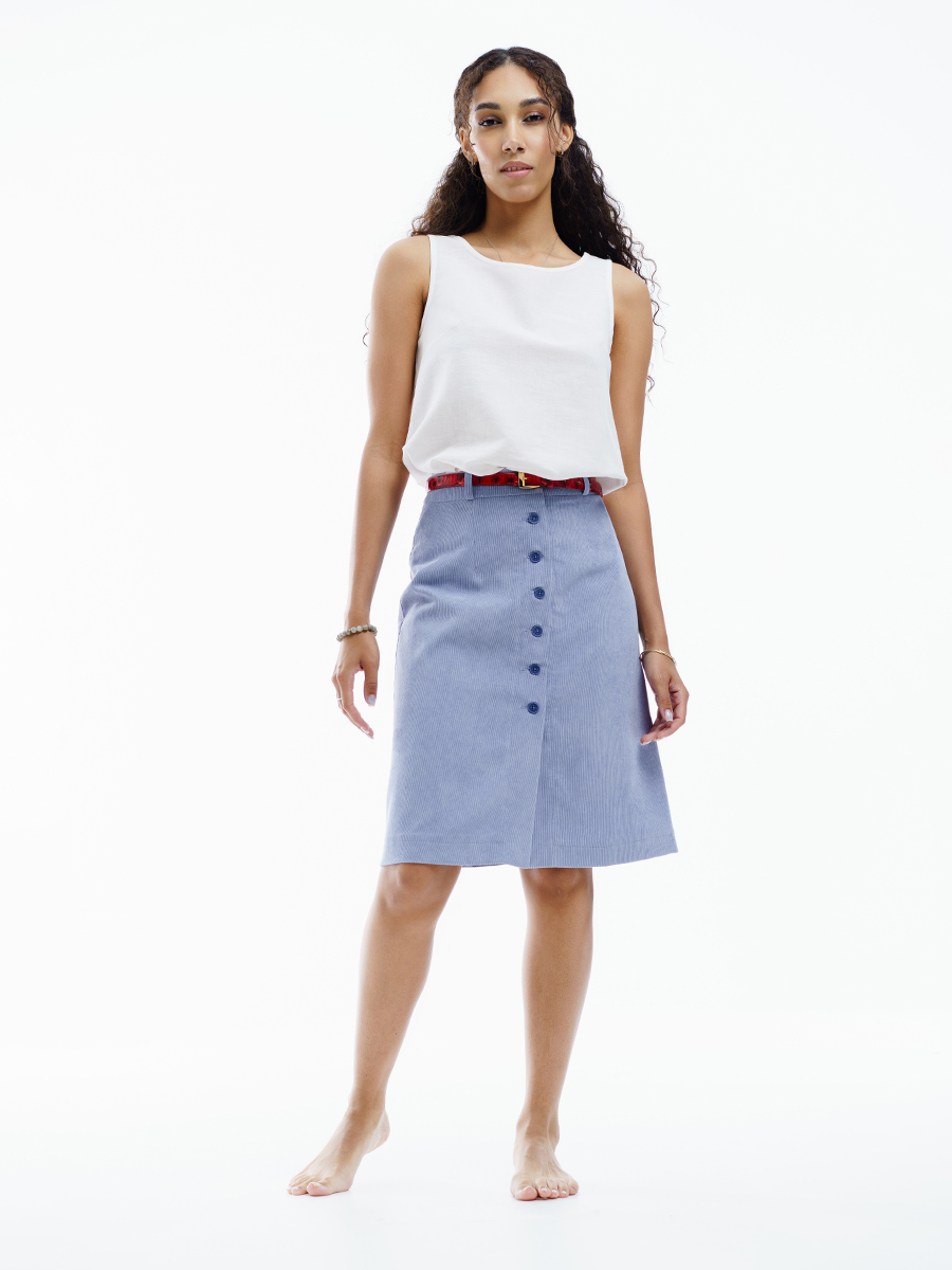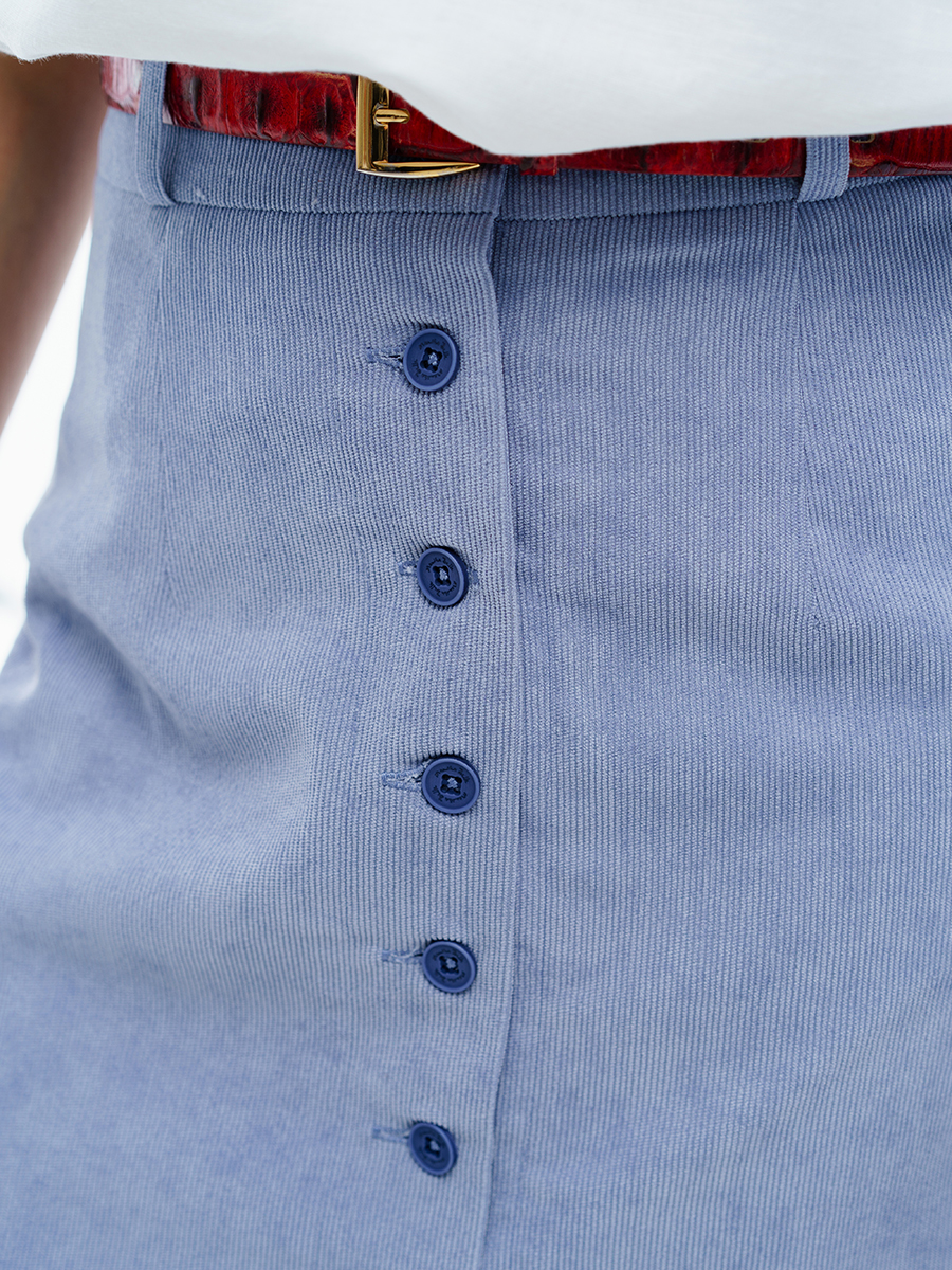 Юбка длинная трапеция из мелкого вельвета для нарядной и повседневной носки. Красивый светло-голубой цвет выгодно подчеркнет ваш образ. Силуэта «трапеция», на обтачке. По передней части распашная на пуговицах . На задней части – две вытачки. Юбка с подкладкой в запаковку.