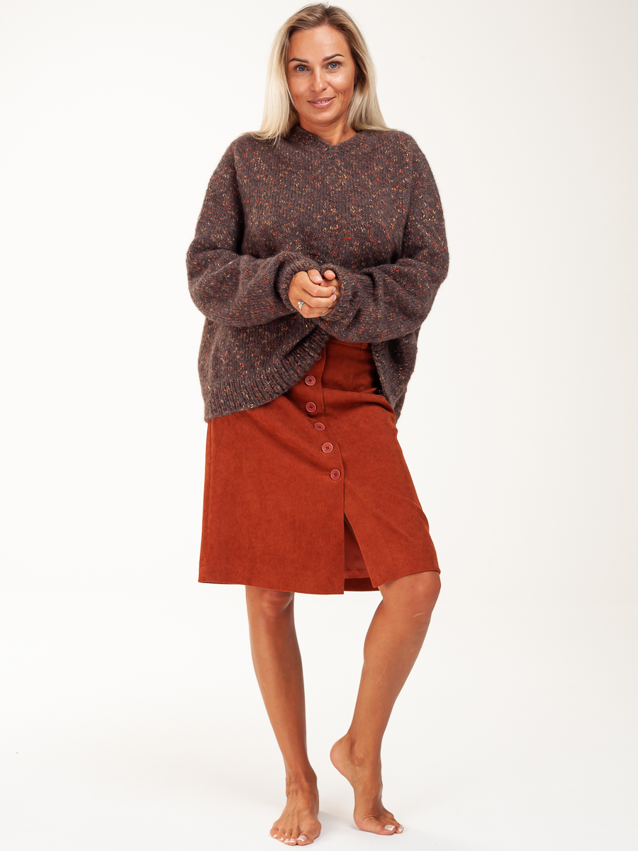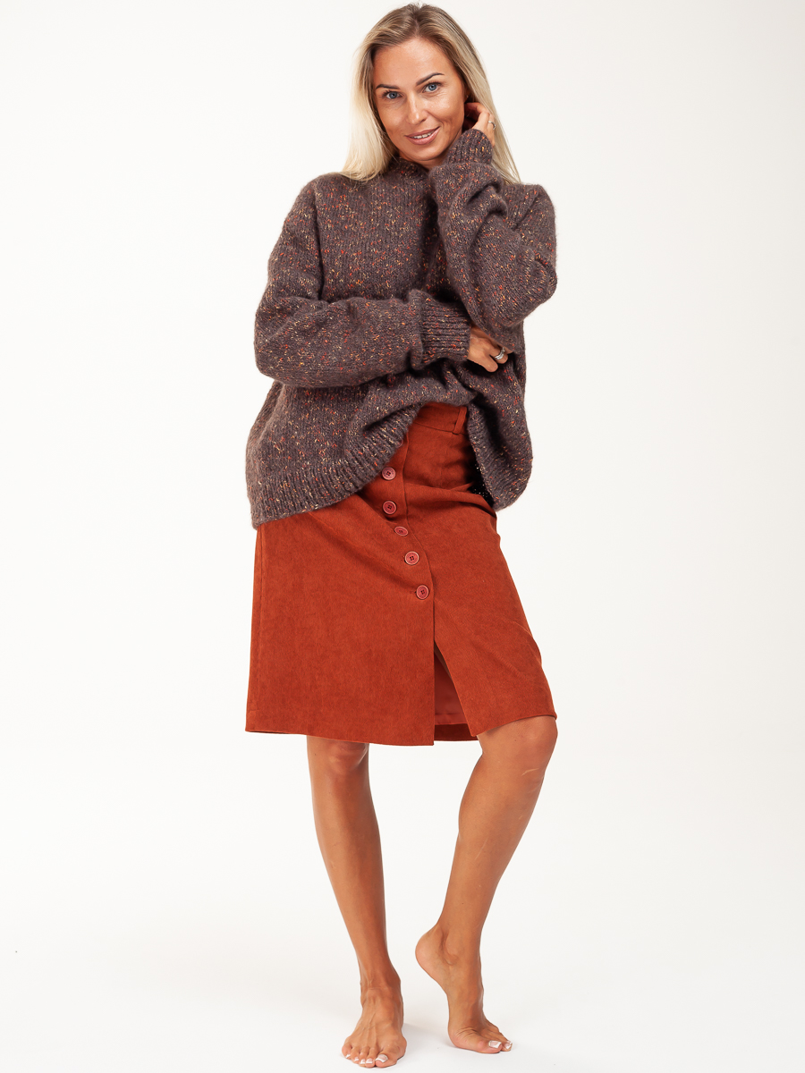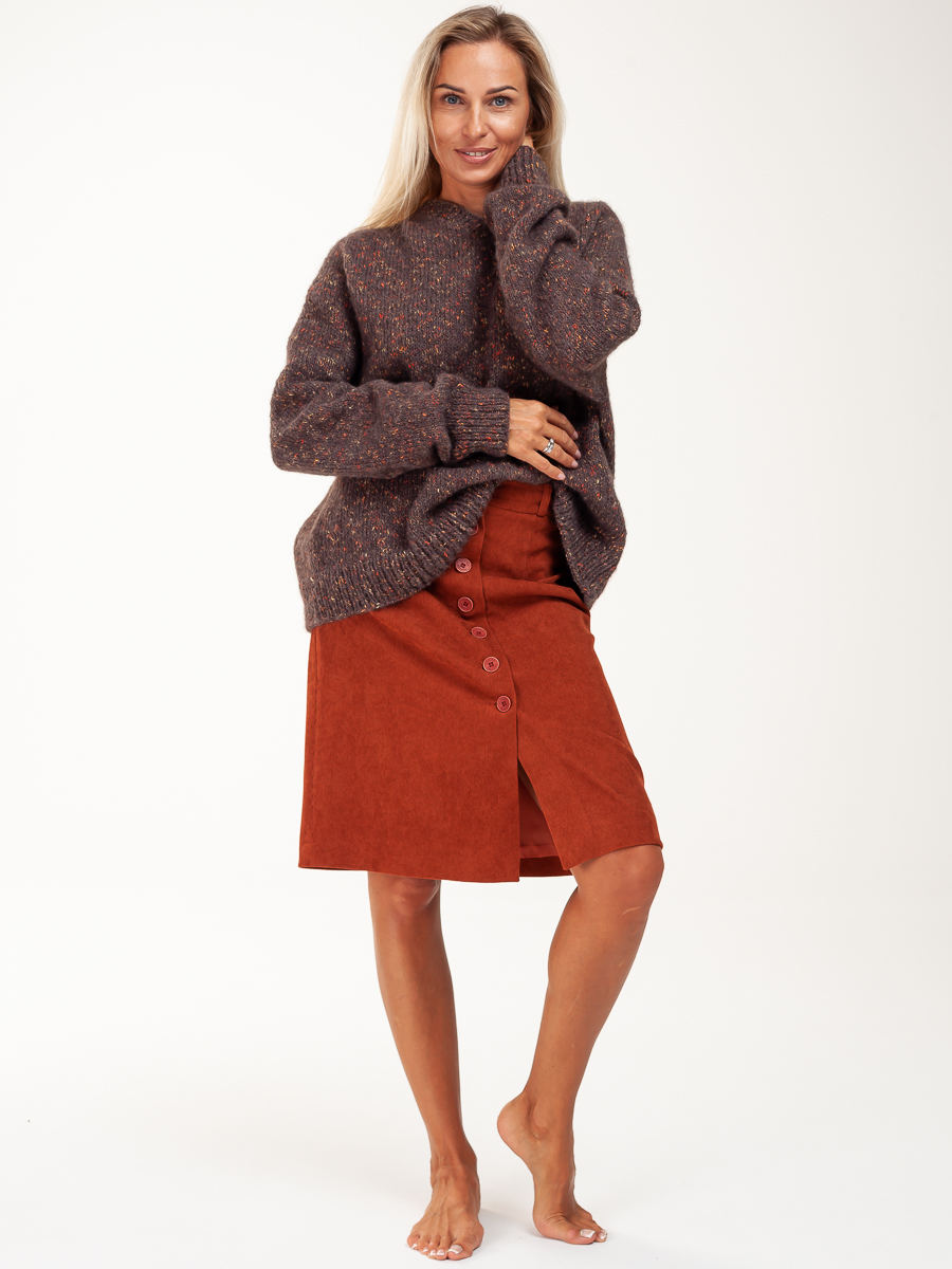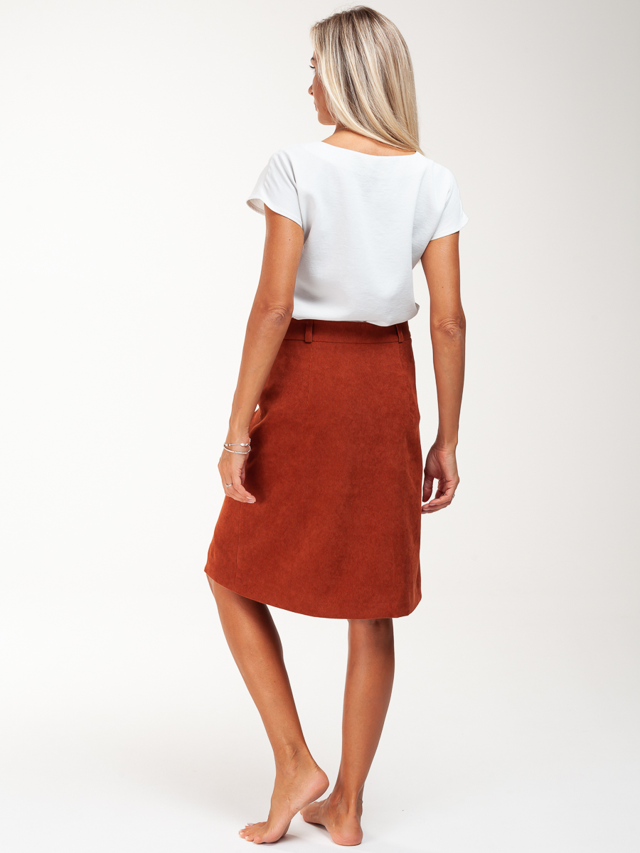 Юбка длинная трапеция из мелкого вельвета для нарядной и повседневной носки. Красивый кирпичный цвет выгодно подчеркнет ваш образ. Силуэта «трапеция», на обтачке. По передней части распашная на пуговицах . На задней части – две вытачки. Юбка с подкладкой в запаковку.