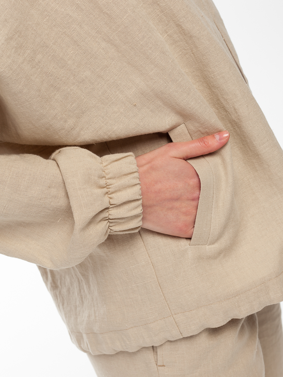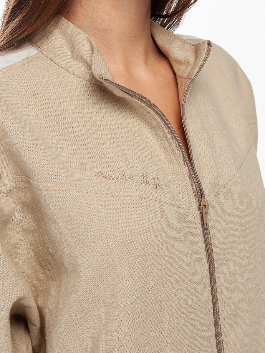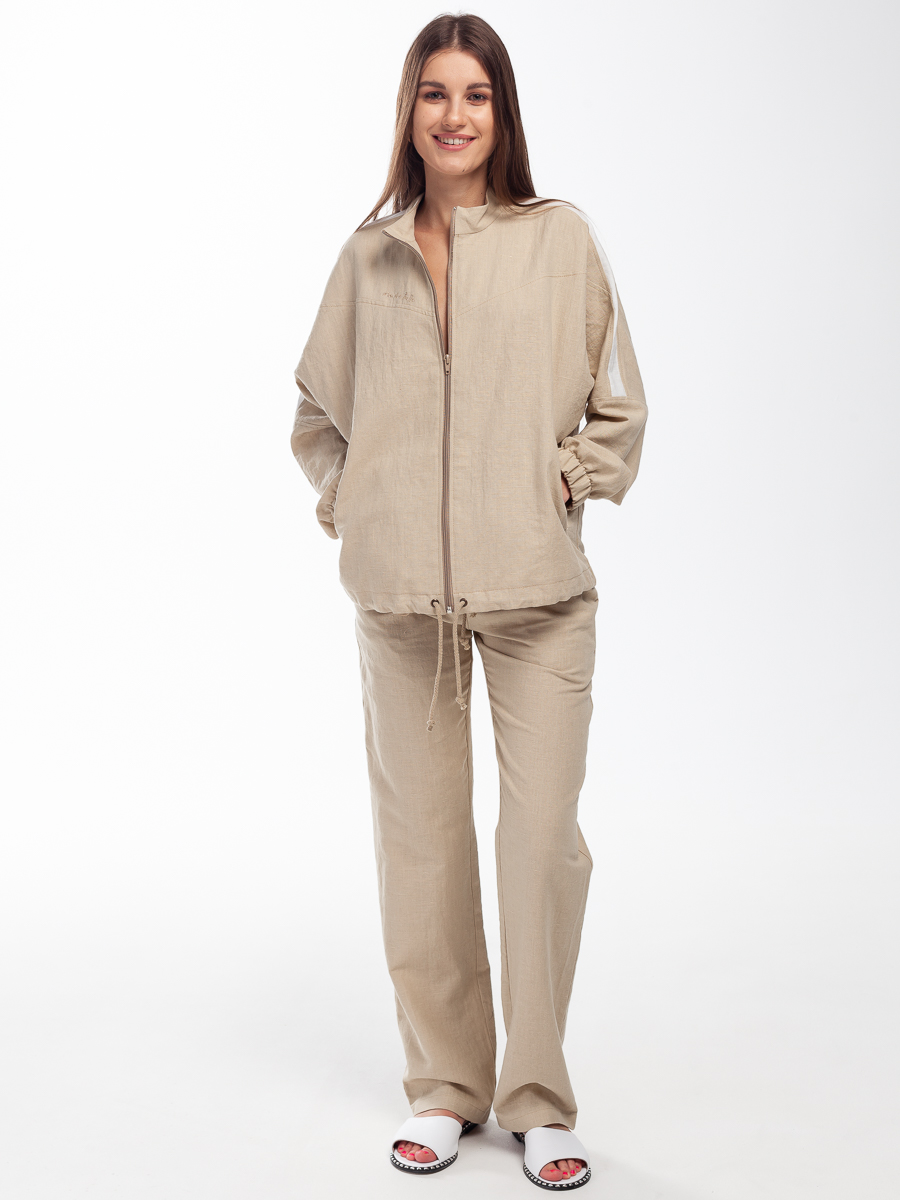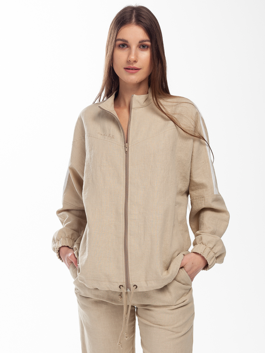 Лён с хлопком – экологичный материал, мягкий, очень приятный к телу.  Женская олимпийка кроя оверсайз с длинными рукавами, а также удобными карманами впереди и фирменной вышивкой.  Женская мастерка из льна с хлопком – всесезонная одежда, которая прекрасно сочетается с любыми брюками или джоггерами, леггенсами. В тёплое время года носите льняной костюм от Manika Belle, а в холодную пору сочетайте байку с другой одеждой, ведь она абсолютно универсальна: ее также можно носить с джинсами и кроссовками, свитером, курткой, бомбером, строя разные образы. Трендовый комплект прекрасно подойдет для прогулок, отдыха, на каждый день, на неформальный выход, в путешествие, в поездку. Стильный льняной женский костюм подойдет для любого типа фигуры. Заказывайте наши костюмы из натуральных тканей и балуйте себя и своих близких!