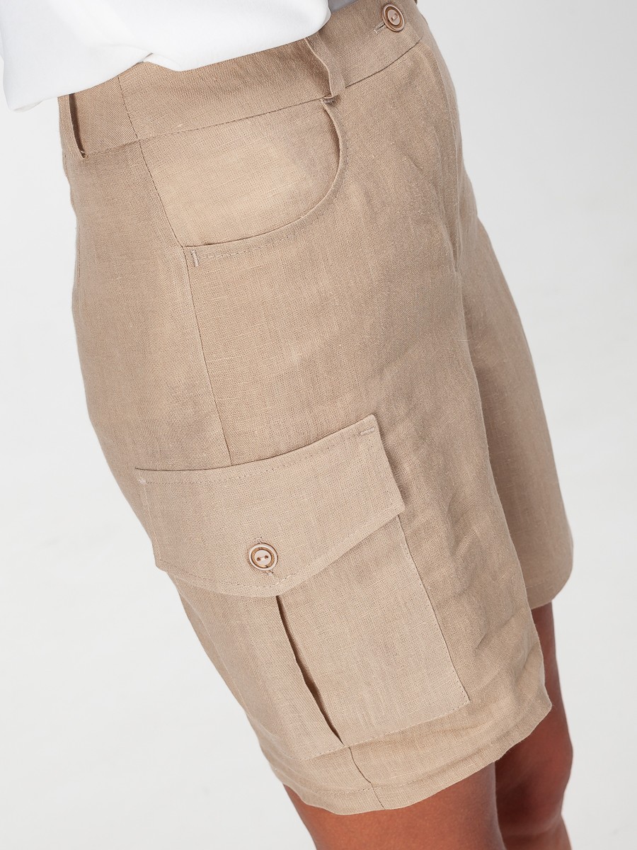 Лёгкие свободные шорты из 100% льна — лучший вариант для лета в городе! Шорты украшены функциональными боковыми карманами. Носите их с базовыми футболками, топами на бретелях, кардиганами и даже строгими жакетами. Составьте полный образ как на модели с жакетом 601/01/2 и блузкой 305/11/1 от Manika Belle.